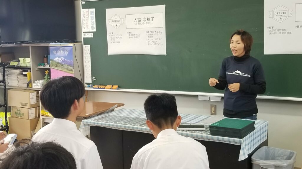 DELKUIジュニア@銚子西中は、1年生121名を対象に、地域で働く18名の講師を迎えて実施されました。