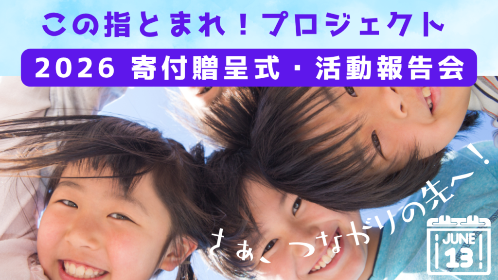このたび2026「この指とまれ!プロジェクト」寄付贈呈式・活動報告会を開催いたします。